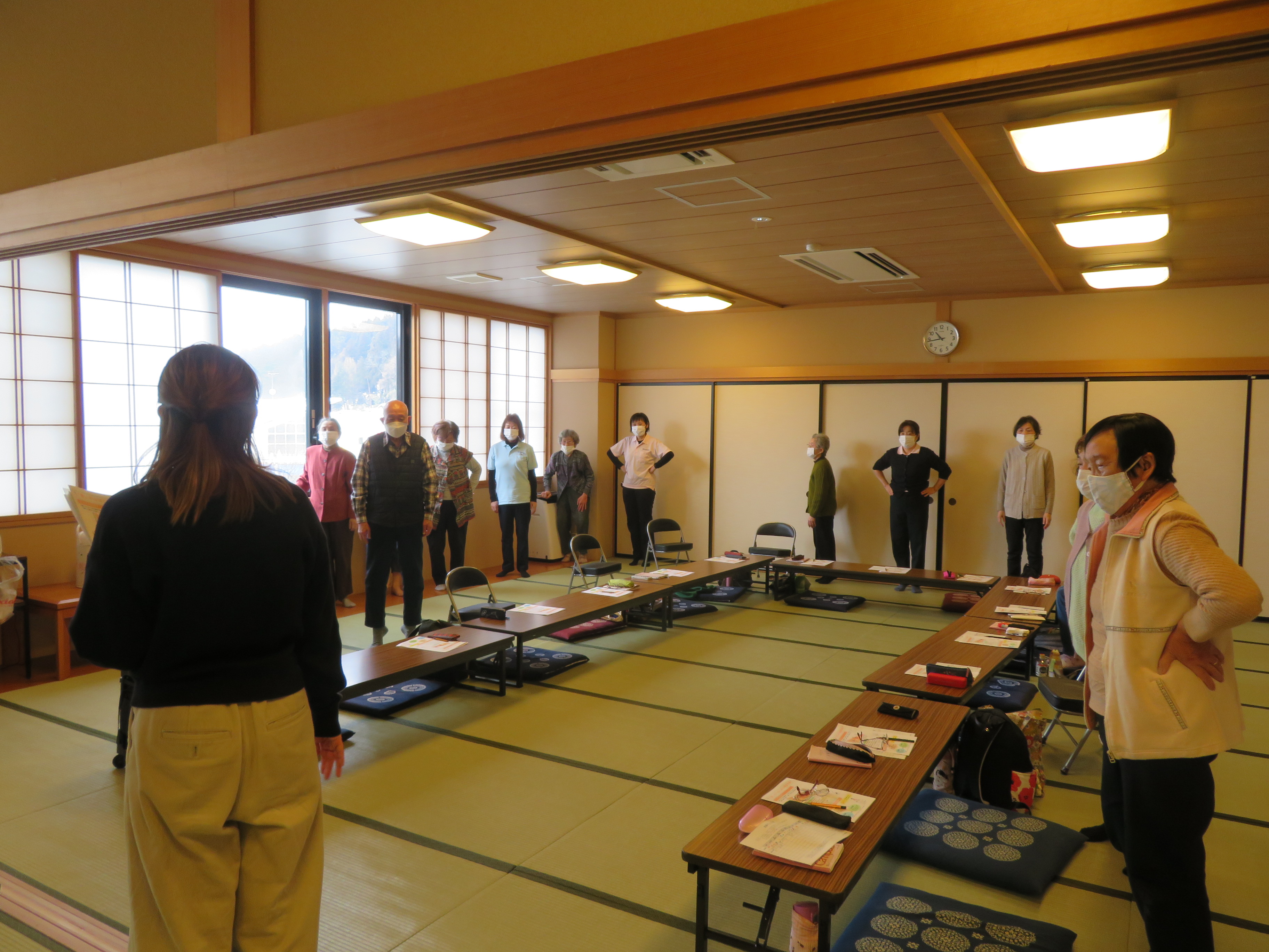 今回は、7人全員の参加がありました。内容は、運動指導員の先生による運動です。